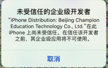 4.苹果手机出现“未受信任的企业级开发者”提示,如下所示,如何操作?