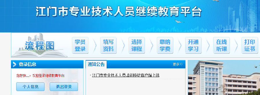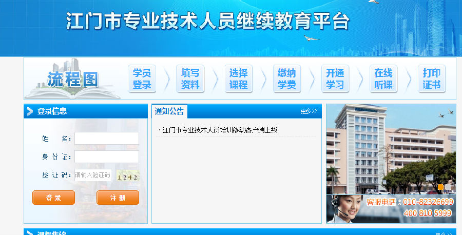 ②通过在五邑职校现场交费,对方给其学员后台开课,开课成功后,学员登陆身份证和姓名(不用自己注册)即可直接学习。