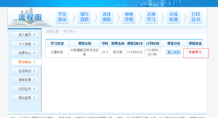 4、点击“确认”按钮后,进入以下学习页面。(已注册学员直接登录也将进入下面页面)