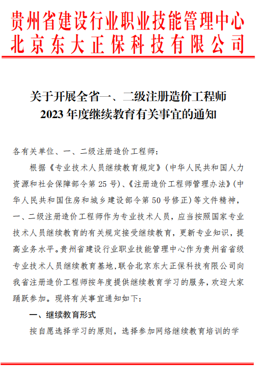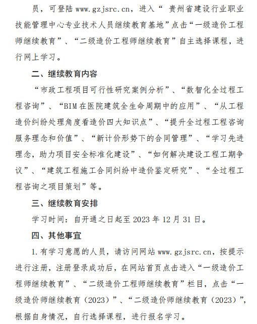 关于开展全省一、二级注册造价工程师 2023 年度继续教育有关事宜的通知